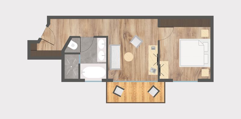 Großzügiges 2-Raum-Appartement mit Wohnzimmer und separatem Schlafraum. Unsere Suite ist mit hochwertigem Zirbenholz ausgestattet, das für seine beruhigende Wirkung bekannt ist. Das moderne Design schafft eine ideale Atmosphäre für pure Erholung.Die Suite ist auch als komfortables 4-Bett-Zimmer nutzbar.
