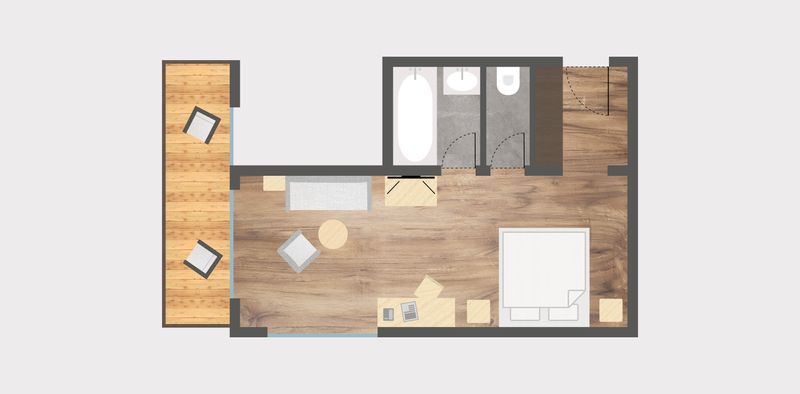 Ausstattung:Balkon, Sitzecke, Ausziehcouch, Bad/Dusche, WC teilweise getrennt, Föhn, Kosmetikspiegel, TV-Radio, Wasserkocher, W-Lan, Safe