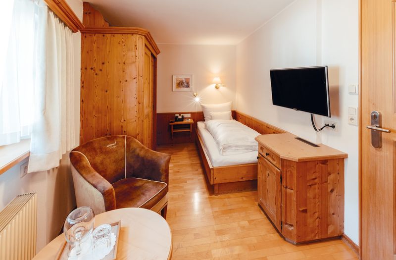 Hier findet man alles, was man braucht.Einzelzimmer mit traditioneller Holzausstattung – zweckmäßig eingerichtet für einen entspannten Aufenthalt.