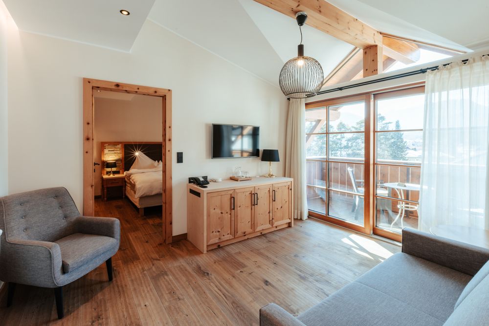 Unsere Suite ist mit hochwertigem Zirbenholz ausgestattet, das für seine beruhigende Wirkung bekannt ist. Das moderne Design schafft eine ideale Atmosphäre für pure Erholung.